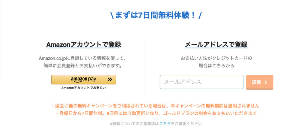 さらに、ゴールドプランに限り「7日間無料体験」を利用することができます。