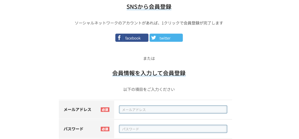 facebookやtwitterのアカウントを使用することもできます。